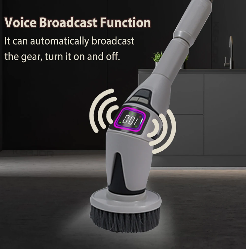 【LED Display/Voice Broadcast/LED Night Light 】The bathroom scrubber with long handle is improved with LED display and Voice Broadcast. You can easily know the power status and speed levels through LED screen, no need to worry about running out of power. The cordless electric spin cleaner is specially designed with a LED night light function, even the dark corners can be cleaned.